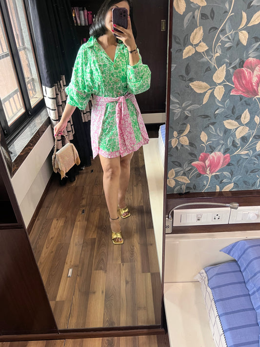 Emerald green half n half shirt dress