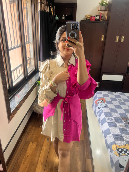 Pink Half n Half Tie around Dress