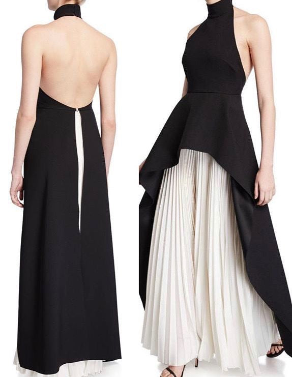 A statement piece designed for modern elegance. This halter-neck top features a sleek, sculpted bodice that beautifully frames the shoulders and neckline. The structured silhouette flows into an asymmetric draped overlay, creating a dramatic layered effect that moves effortlessly with every step.