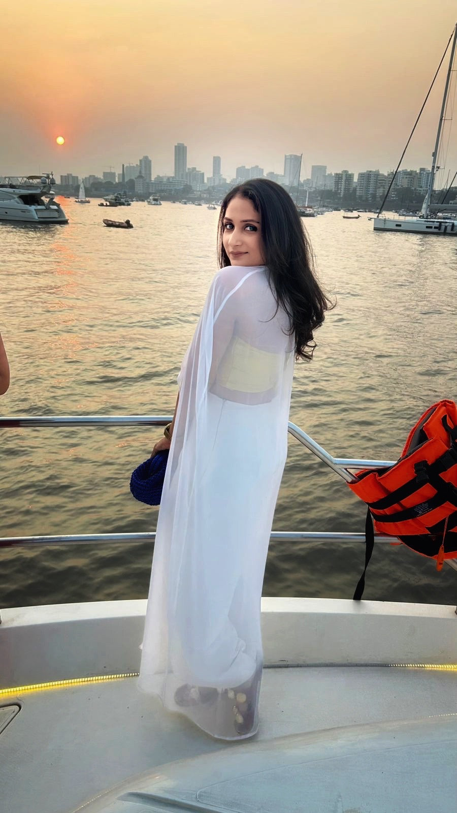 - Sheer white georgette cape